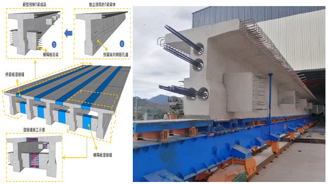 簡介:簡化原T梁橫隔板構(gòu)造,優(yōu)化結(jié)構(gòu)尺寸,橫隔板采用“一字型”連接,提升梁體外觀,提高生產(chǎn)效率。