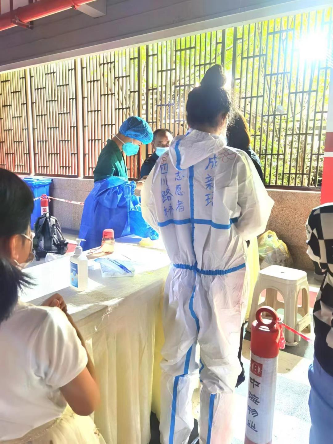 新材料集團職工王瀟作為一名黨員,更是一名四川路橋黨員先鋒服務隊的隊員,在做好家人的居家防護后,向所在小區(qū)申請了志愿者服務,9月3日,為了讓前一日連續(xù)奮戰(zhàn)到深夜的志愿者可以輪換休息,她顧不上吃飯喝水,堅守在核酸檢測一線崗位,維護秩序需要的時候就充當紅馬褂的角色,掃碼員緊張的時候就去穿上白大褂幫著掃碼,有群眾發(fā)生爭執(zhí)時就去當調(diào)解員,哪里需要她就出現(xiàn)在哪里,成為了小區(qū)群眾都認識的“萬金油”。