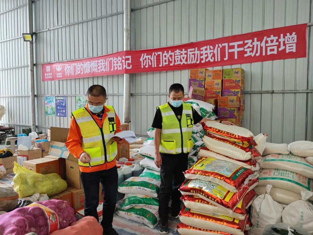 “鋼構(gòu)公司、公路、養(yǎng)護、交綠分公司支援的生活物資到了!肖書記,你過來看一下!”