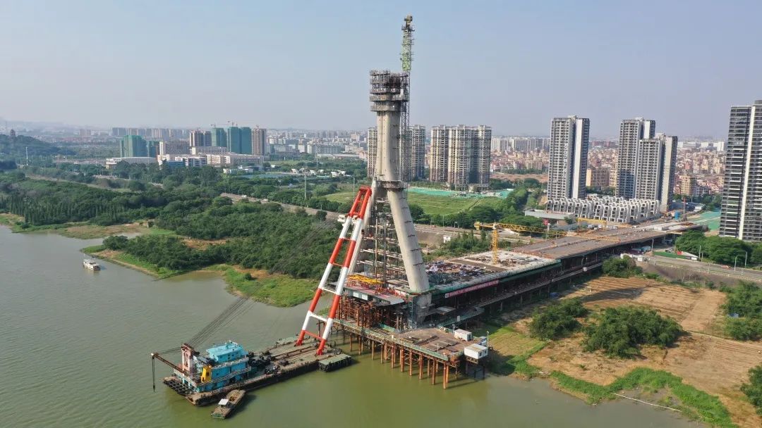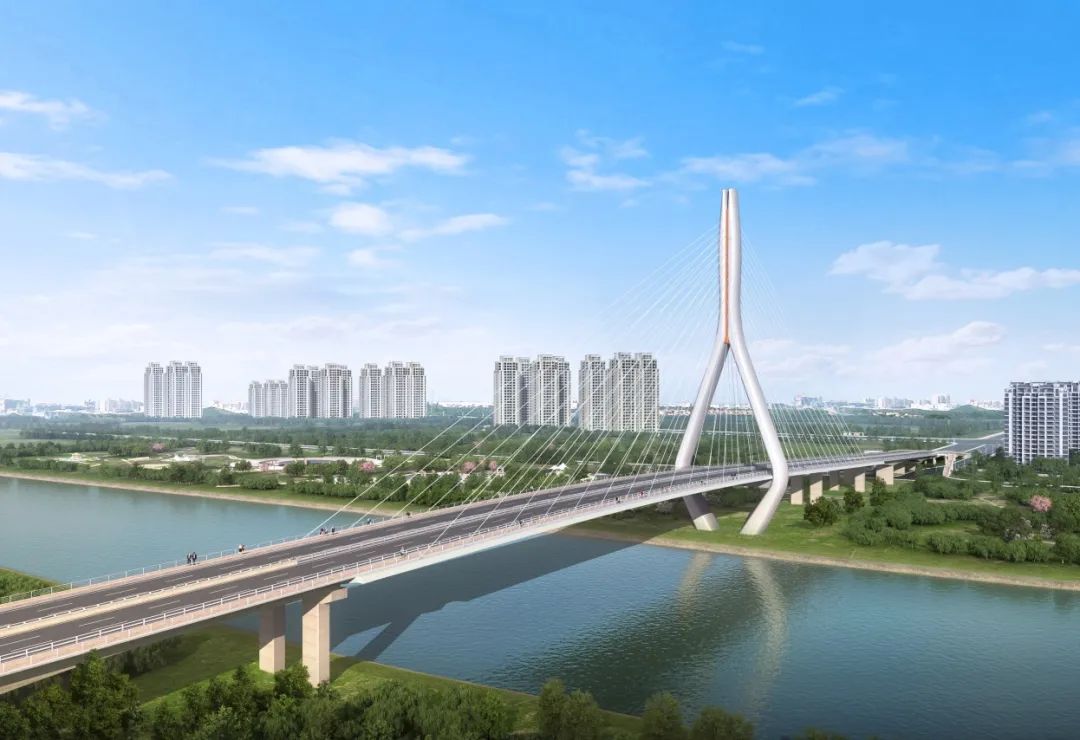 同濟(jì)路西延工程(禪港東路至季華北路)位于佛山市禪城區(qū)南莊鎮(zhèn)與張槎街道,起點(diǎn)為禪港東路與科潤(rùn)路的平交口處,向東與地鐵四號(hào)線共線約250米,依次跨綠島湖、羅格圍大堤、地鐵四號(hào)線、東平水道、佛山大堤、東平路后與季華北路相交,總長(zhǎng)1.54千米。主線橋共5聯(lián),全長(zhǎng)892米,其中主橋(第三聯(lián))為獨(dú)塔斜拉橋,跨徑為314米。