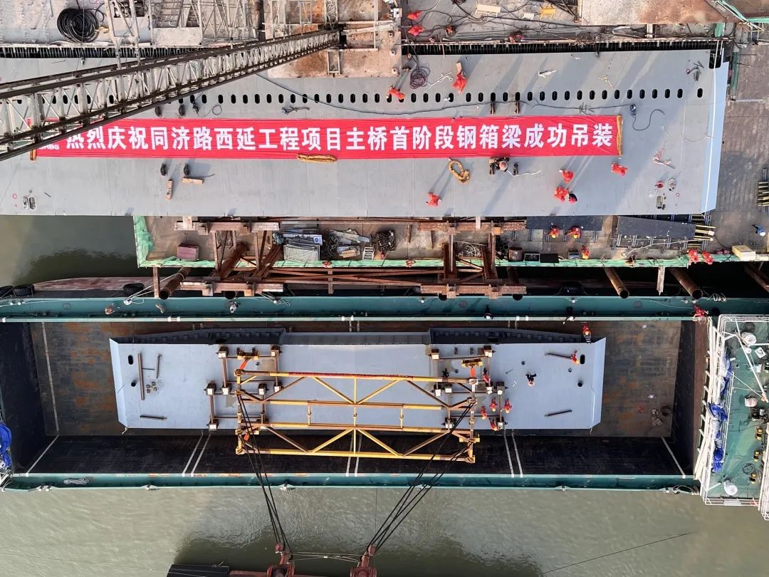 2022年9月14日晚7時(shí),伴隨著A0、A1兩節(jié)鋼箱梁的成功下放,由四川路橋橋梁公司承建的同濟(jì)路西延工程項(xiàng)目主橋首節(jié)段鋼箱梁吊裝順利完成。至此,該項(xiàng)目主橋主體結(jié)構(gòu)的最后一道工序正式拉開帷幕,標(biāo)志著項(xiàng)目建設(shè)取得又一個(gè)階段性突破。