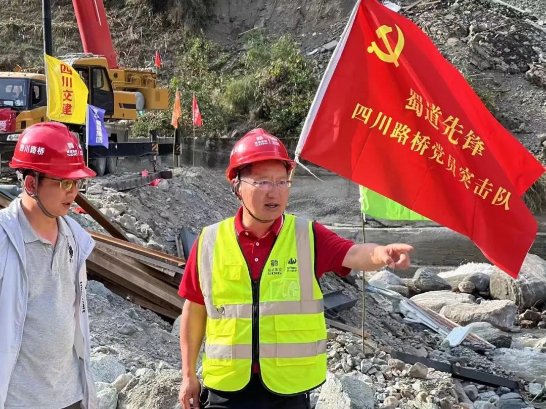 作為四川路橋交建集團(tuán)隧道公司的負(fù)責(zé)人,汪比超親歷過(guò)“5·12”汶川大地震,“9·5”瀘定地震發(fā)生后,他迅速判斷出這次情況十分危急,必須立刻趕往現(xiàn)場(chǎng),那里還有隧道公司6個(gè)在建項(xiàng)目,超過(guò)200人項(xiàng)目部員工!一路上余震頻頻,他顧不上沿途隨時(shí)飛落的沙石,直奔位于得妥鎮(zhèn)的瀘石C2總包部搶險(xiǎn)指揮部。根據(jù)搶險(xiǎn)指揮部安排,汪比超擔(dān)任應(yīng)急搶險(xiǎn)組組長(zhǎng),全面負(fù)責(zé)省道S217瀘定段的搶險(xiǎn)工作,統(tǒng)籌指揮7支分隊(duì)按搶險(xiǎn)方案迅速開(kāi)展工作,爭(zhēng)分奪秒投入到搶險(xiǎn)救援工作當(dāng)中。6日下午,第一個(gè)好消息傳出——S434金光至磨西段10公里斷道成功搶通,一條從瀘定縣城到震中磨西鎮(zhèn)的生命通道搶通了!此時(shí)距離投入搶險(xiǎn)不到24小時(shí),汪比超初戰(zhàn)告捷,顧不上喝一口水,又迅速轉(zhuǎn)戰(zhàn)下一個(gè)搶險(xiǎn)點(diǎn)位。