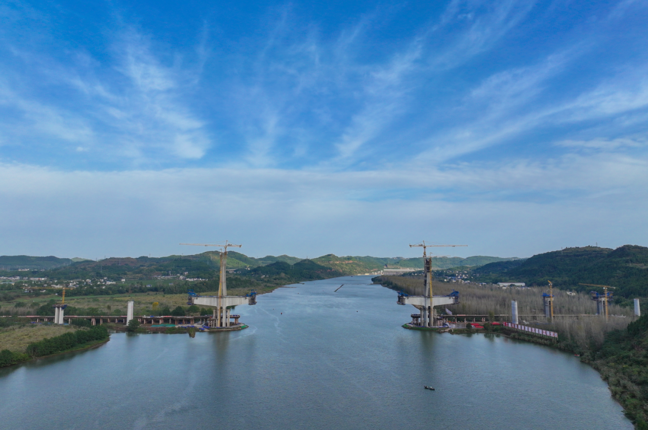 成達(dá)萬高鐵是我國“八縱八橫”高鐵網(wǎng)沿江通道的重要組成部分。線路西起四川省成都市天府站,途經(jīng)四川省資陽市、遂寧市、南充市、達(dá)州市及重慶市開州區(qū)、萬州區(qū),接入既有鄭渝高鐵萬州北站。正線全長477公里,設(shè)計(jì)時(shí)速350公里,其中新建線路419.8公里,接入既有成自高鐵資陽西站。南充嘉陵江特大橋位于四川省南充市順慶區(qū)搬罾街道和高坪區(qū)龍門街道之間,橫跨嘉陵江,是全線控制性工程之一,也是全線施工難度最大的橋梁之一。大橋全長6224.98米,主橋采用141+328+141米矮塔混合梁斜拉橋,主跨328米,在時(shí)速350公里雙線高速鐵路矮塔混合梁斜拉橋中,其跨度居世界第一。