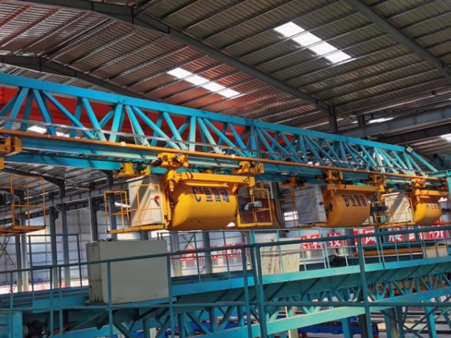 “智慧梁廠”2.0擯棄了傳統(tǒng)澆筑方式和罐車運輸,采用“魚雷罐運輸混凝土+布料器布料+自動振搗系統(tǒng)”的方式,操作人員減少50%,施工效率提升100%,通過油改電減少柴油使用23萬升。