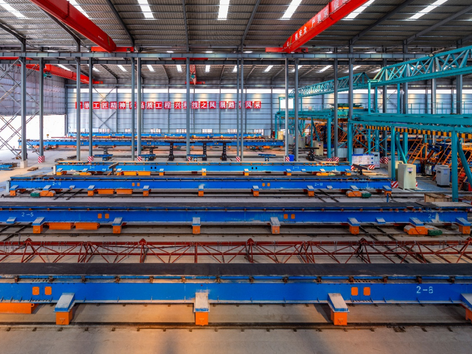 “智慧梁廠”2.0在模板工程方面,“智慧梁廠”2.0采用“固定模板+移動臺座”的新型預制方式,實現(xiàn)預制梁幾何尺寸毫米計,操作人員相對于傳統(tǒng)施工模式減少60%,施工速率提升100%。